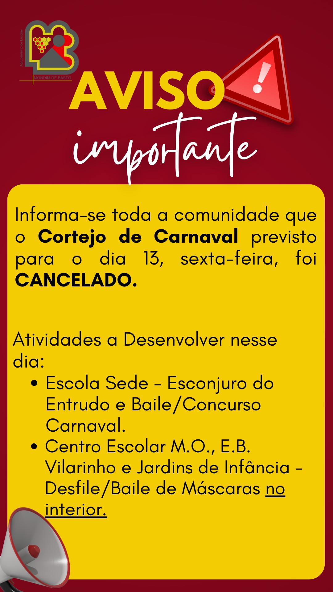 O Externato de Vila Meã fez saber, esta quarta-feira, que foi adiado o desfile de Carnaval agendado para sexta-feira,13 de Fevereiro. Em Vila Meã é tradição o desfile acontecer nas principais artérias do centro de Ataíde com o desfile de toda a comunidade educativa deste polo urbano. O desfile foi remarcado para 20 de Fevereiro (sexta-feira).