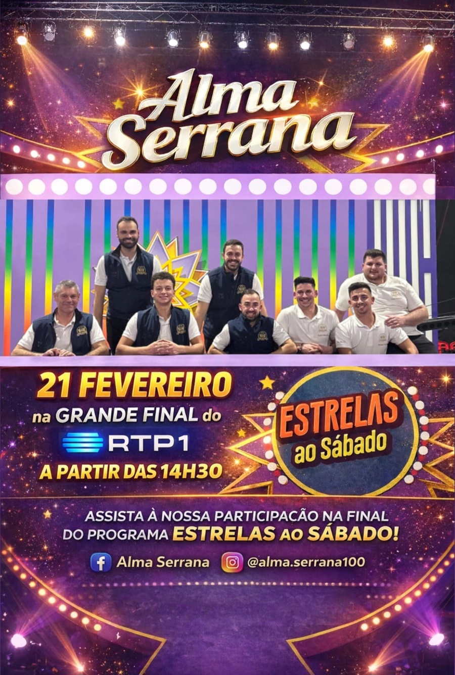 A banda celoricense Alma Serrana, vai marcar presença na grande final do programa Estrelas ao Sábado, da RTP1, já este sábado, a partir das 14h30. O grupo nascido na freguesia de Agilde chega a este momento decisivo depois de uma participação que tem vindo a conquistar o público e o júri, levando ao palco a energia, a alegria e a identidade da música popular do Norte.