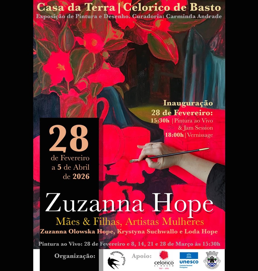 Foi anunciada uma exposição de Pintura e Desenho de ZUZANNA HOPE na Casa da Terra em Celorico de Basto. A exposição “Mães & Filhas, Artistas Mulheres” inaugura a 28 de Fevereiro e vai manter-se até 5 de Abril. Uma exposição com curadoria da artista plástica Carminda Andrade.