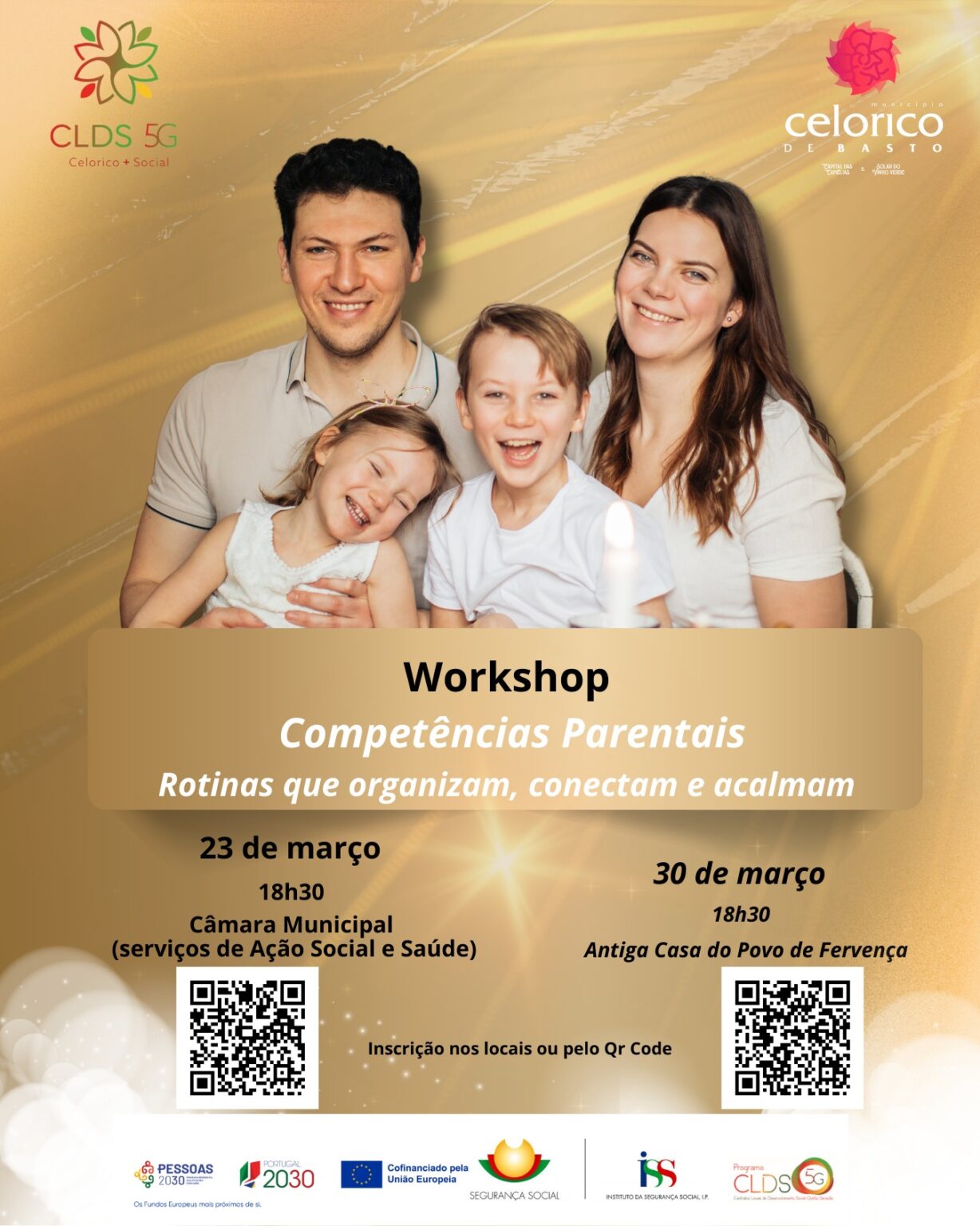 É ja na próxima segunda-feira que vai decorrer o Workshop “A Importância das Rotinas no Bem-Estar Familiar” nas instalações dos Serviços de Ação Social e Saúde da Câmara Municipal. O CLDS 5G Celorico+Social promovido pelo Município de Celorico  de Basto, no âmbito da atividade n.º 8 – Laços da Parentalidade, vai realizar dois workshops dedicados ao tema “A Importância das Rotinas no Bem-Estar Familiar”, dirigidos a pais e cuidadores de crianças dos 0 aos 6 anos. O primeiro workshop acontece a 23 de março. Já dia 30 de março, a iniciativa será dinamizada no Centro Urbano da Mota na Antiga Casa do Povo de Fervença.