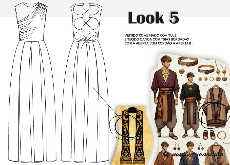 Já são conhecidas imagens de alguns dos coordenados que a designer Marisa Marinho vai levar ao Setúbal Fashion Show, já dia 13 de Setembro. A designer disponibilizou as imagens à RRB. Peças de inspiração romana com mistura de vários tecidos, são 11 coordenados (femininos) que vão desfilar pela mão da designer de Celorico de Basto. Entre os looks do desfile estão um conjunto de vestido e sobrecapa com chapéu, vestido comprido que junta ganga e bordados, top e calça com franja, ou camisa em popeline com colete em rede e cortiça e calça fluída. (ver imagens abaixo). São coordenados que prometem bastante contraste de materiais, sempre com inspiração romana. A participar pela primeira vez no evento, Marisa Marinho foi selecionada entre mais de 100 candidatos. Leia mais em aqui.